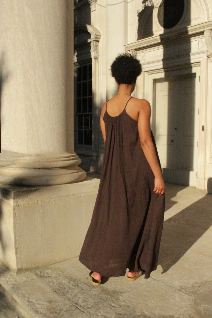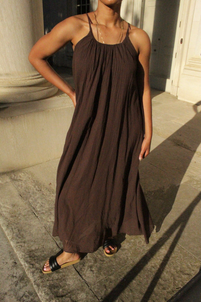 The perfect summer maxi made from thin layered cotton. Gathered elastic neckline makes this piece extra comfortable and easy to throw on and go. Float around on warm days in this versatile piece. We love her paired with leather sandals, sneakers or woven heels.