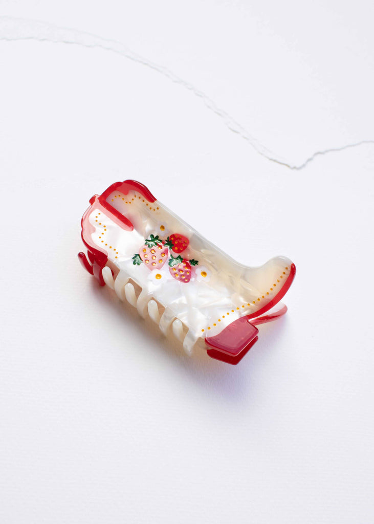 Playful boot-shaped hair clip carries a sweet touch of nostalgia. The strawberry details bring back little childhood memories of simple joys, making it more than just an accessory—it’s a piece of happiness you can wear.