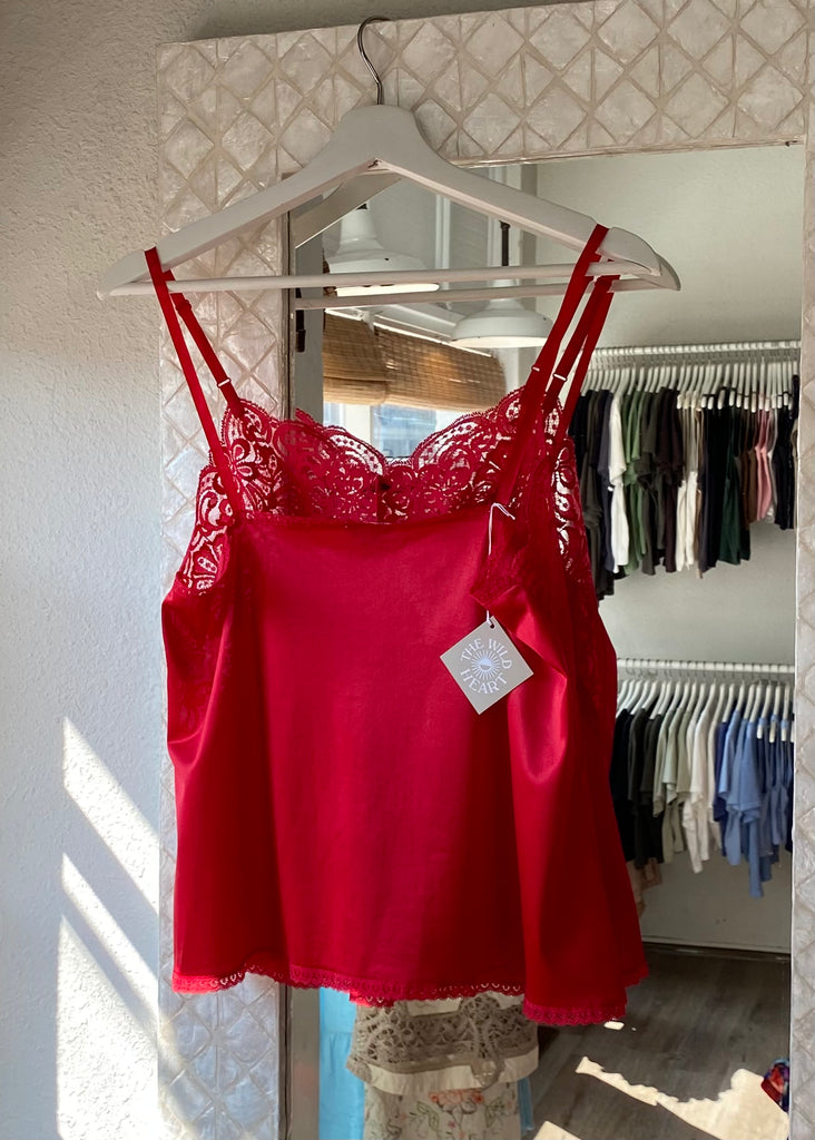 Classic red slip cami, wear on its own or under a blazer/cardigan.