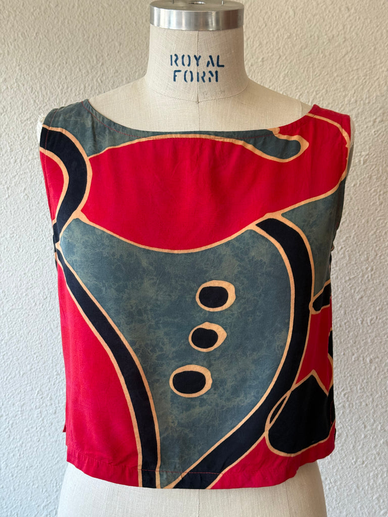 Vintage crop top with a unique abstract pattern. A fun, lightweight top to jazz up any look!
