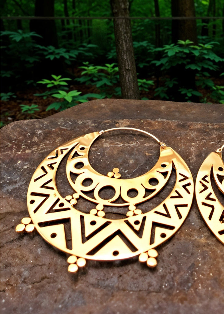 Expertly handcrafted in Bali, these earrings feature hypoallergenic Italian brass with easeful hinged sterling silver ear pin closure. Created using the lost wax method and ethically produced, they honor tradition and community.