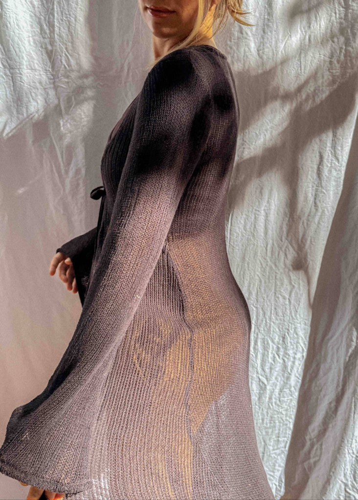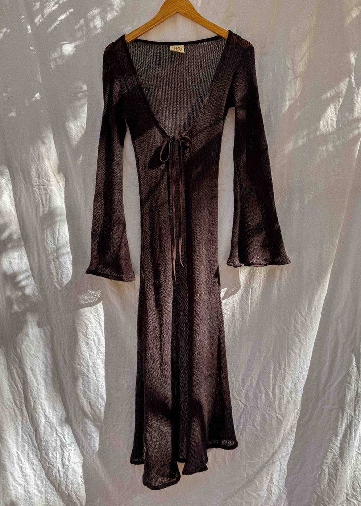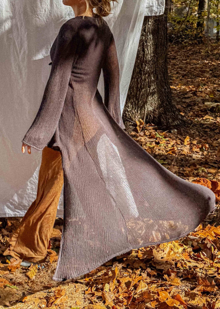 100% Organic Cotton bell sleeve maxi duster. Stunning open knit with plenty of stretch. Cozy and soft, perfect for layering open or tied in front.