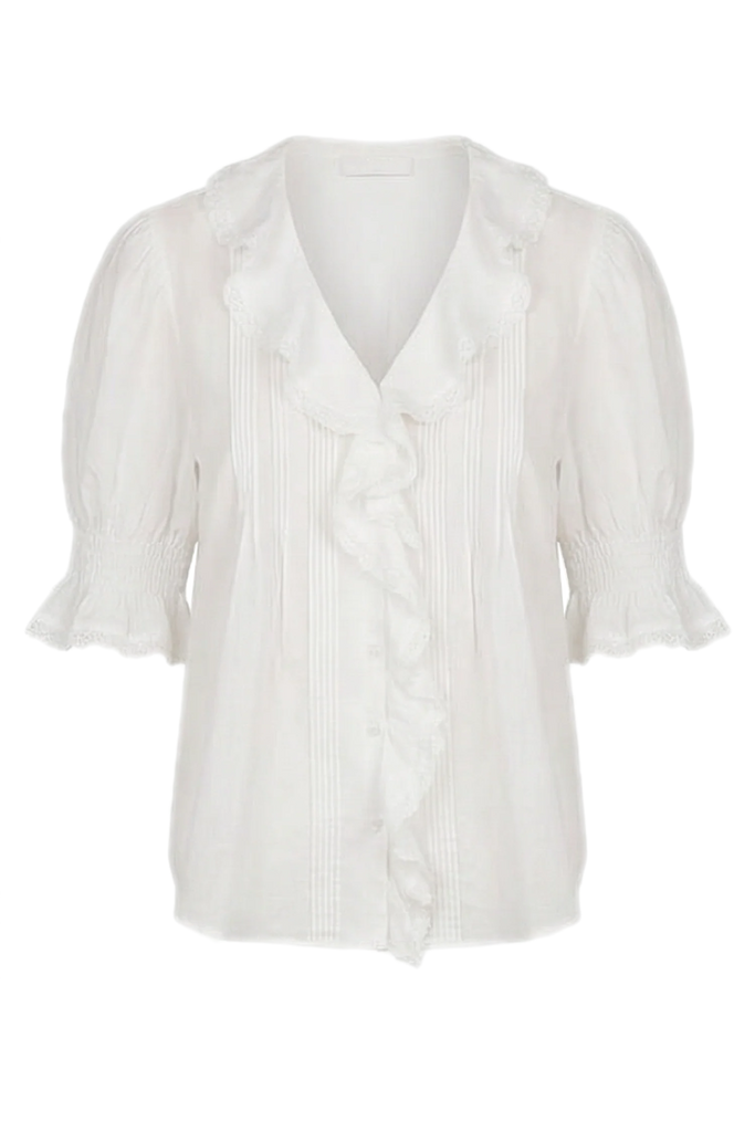 Fall under the spell of our top-selling Greta Blouse - a vision of luxurious cotton elevated by exquisite hand-made pintucks that cascade front and back, framed by soft ruffles and delicate lace for an air of heirloom romance.
